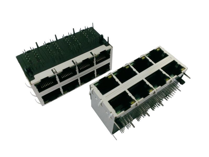 Modular 2x4 RJ45 Connectors Meet IEEE802.3 Standard -20-70 Degree Working Temperature Images |